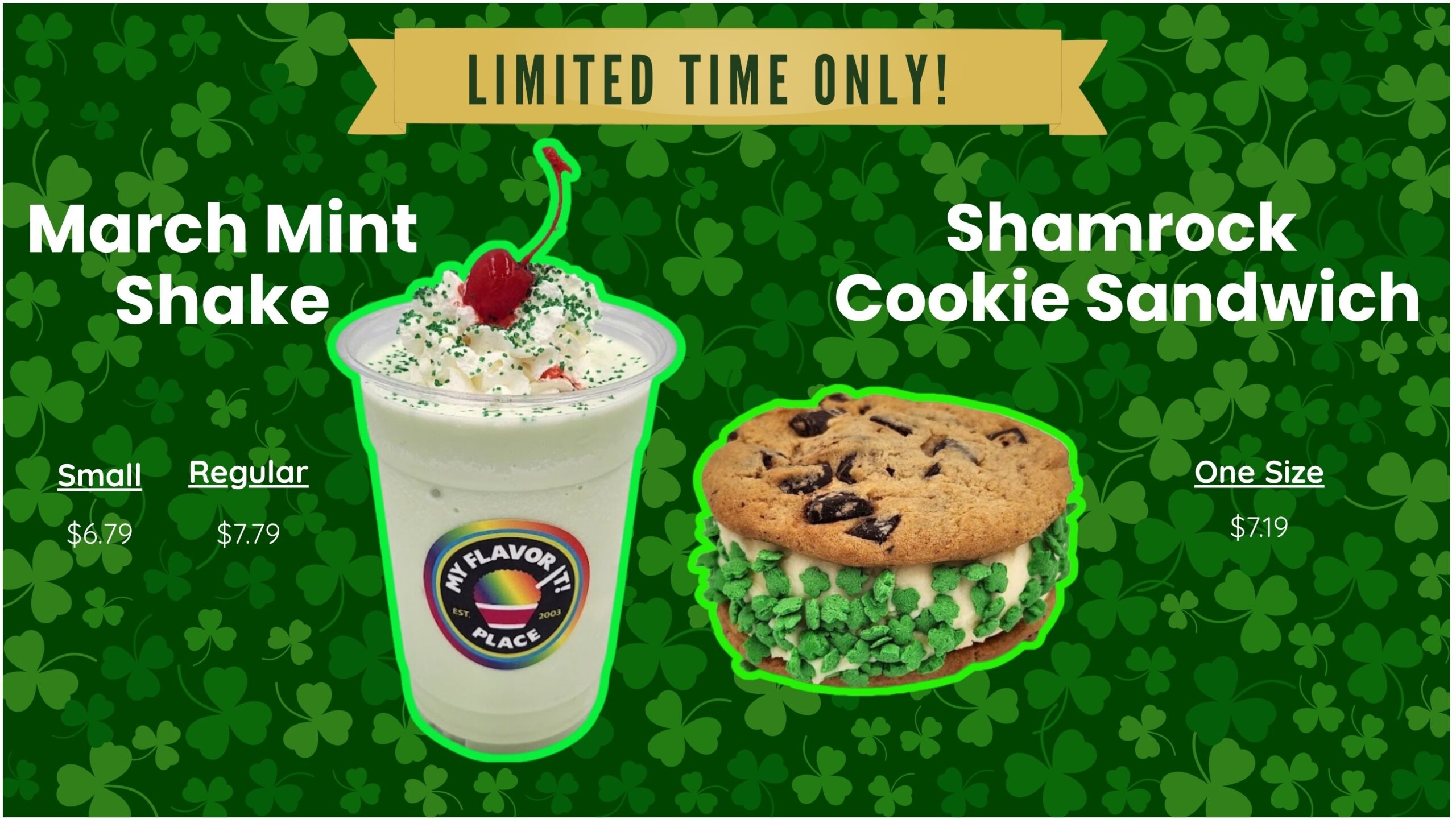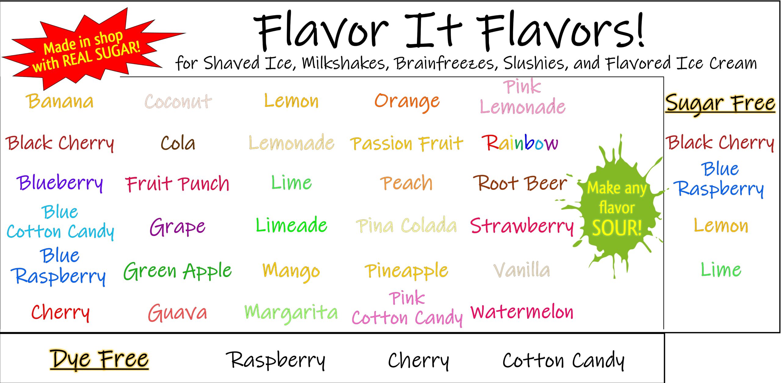 My Flavor It! Place offers products that may contain peanuts, tree nuts, soy, milk, eggs and/or wheat. While we take steps to minimize the risk of cross contamination, we cannot guarantee that any of our products are safe to consume for customers with peanut, tree nut, soy, milk, egg and/or wheat allergies. Please notify an employee of your allergy.